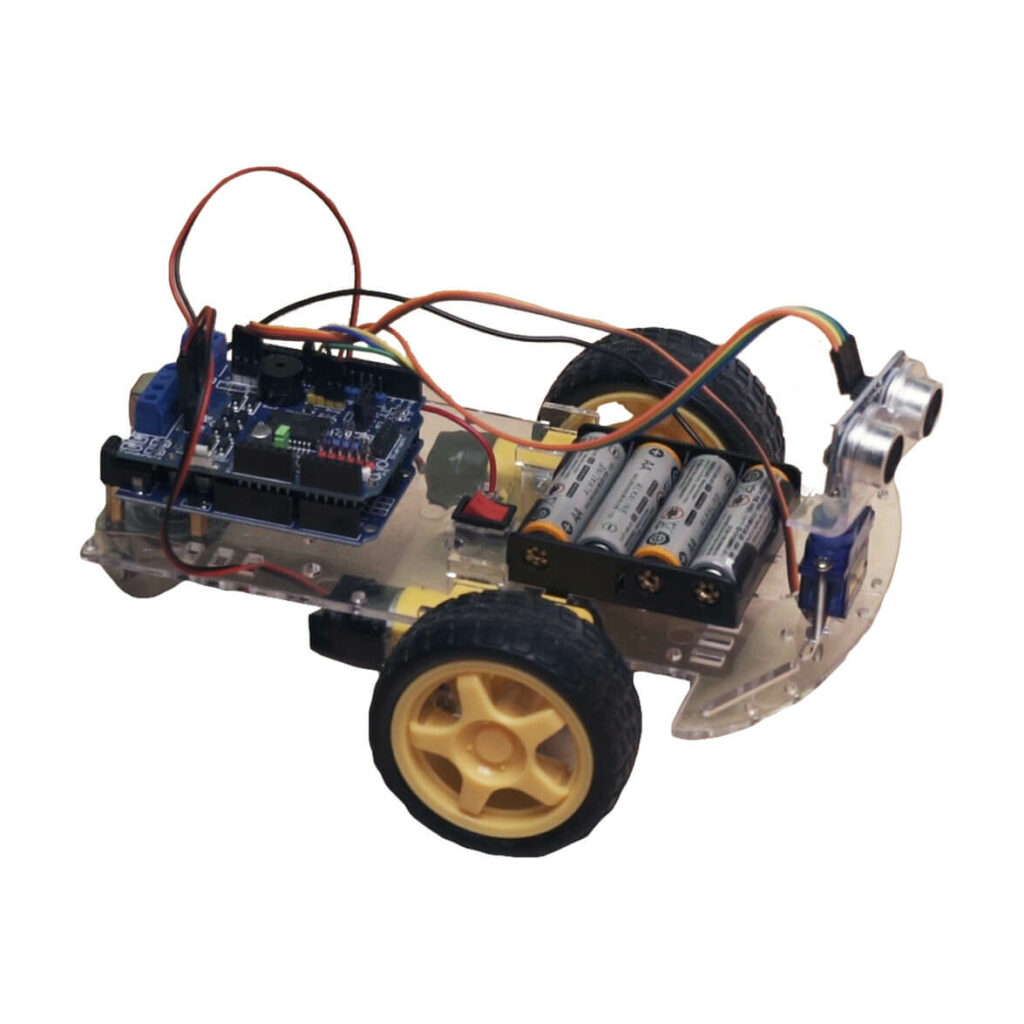 | Trousse Auto Arduino (7e à 12e année) Activités SaskCode | ![]() | – Trousse de classe composée de 12 cartes Arduino. – Contrôleur à moteurs L298P. – Carrosseries d’autos avec moteurs et roues. – Maquette sans soudure pour la conception et la construction de circuits. – Servomoteurs et sondes ultrasonores. – Accessoires variés. |